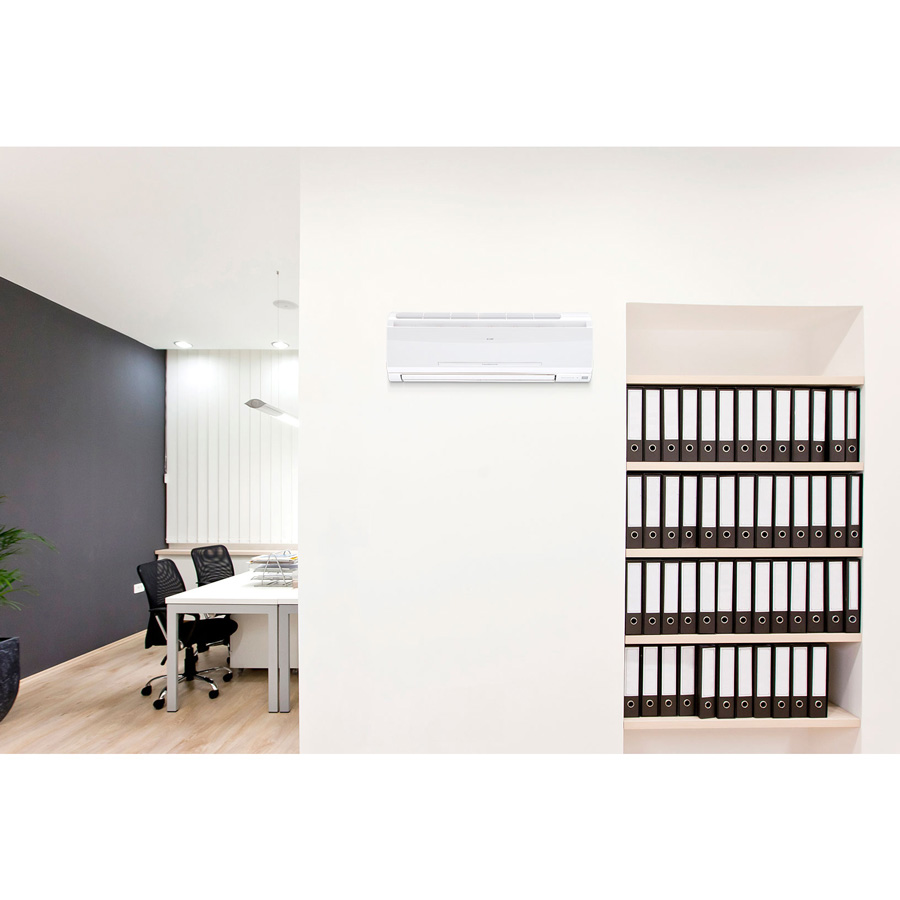 Велика продуктивність повітря у поєднанні з широким кутом подачі повітряного струменя забезпечує рівномірне охолодження/обігрів будь-якого простору (навіть неправильної форми), досягаючи при цьому найвищої енергоефективності (EER=3,91) .